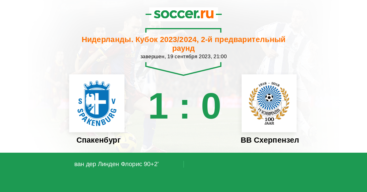 Протокол матча Спакенбург против ВВ Схерпензел