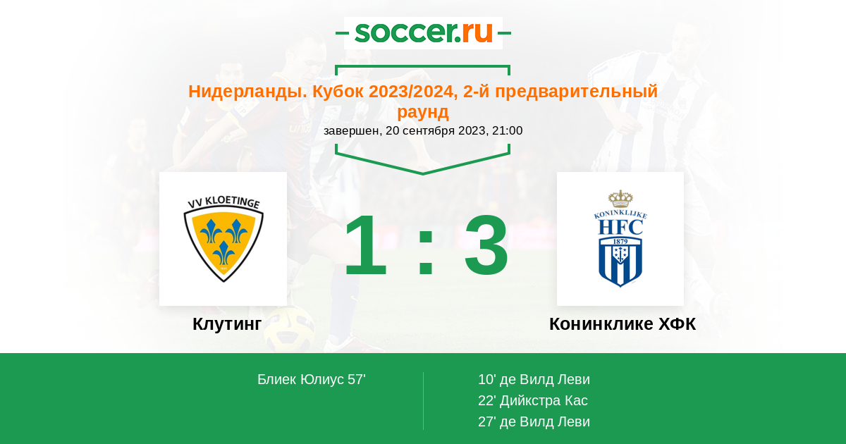Протокол матча Клутинг против Конинклике ХФК