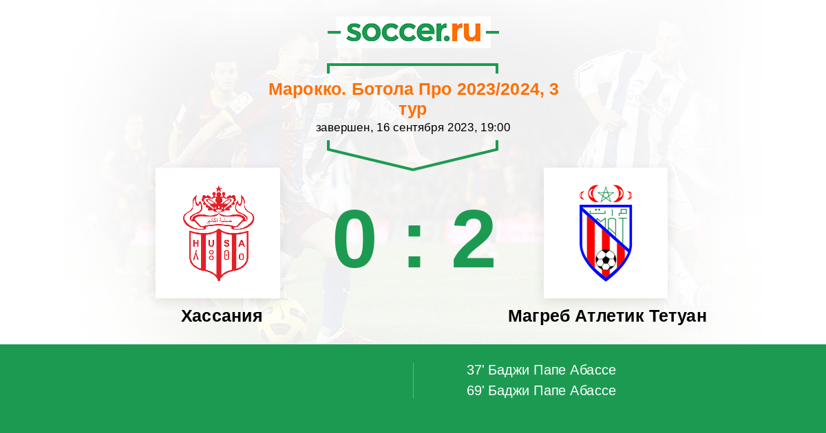 Протокол матча Хассания против Магреб Атлетик Тетуан