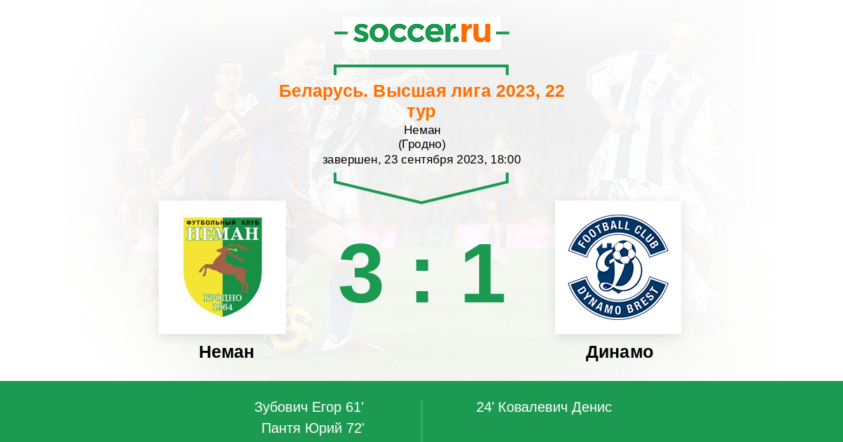 Протокол матча Неман против Динамо
