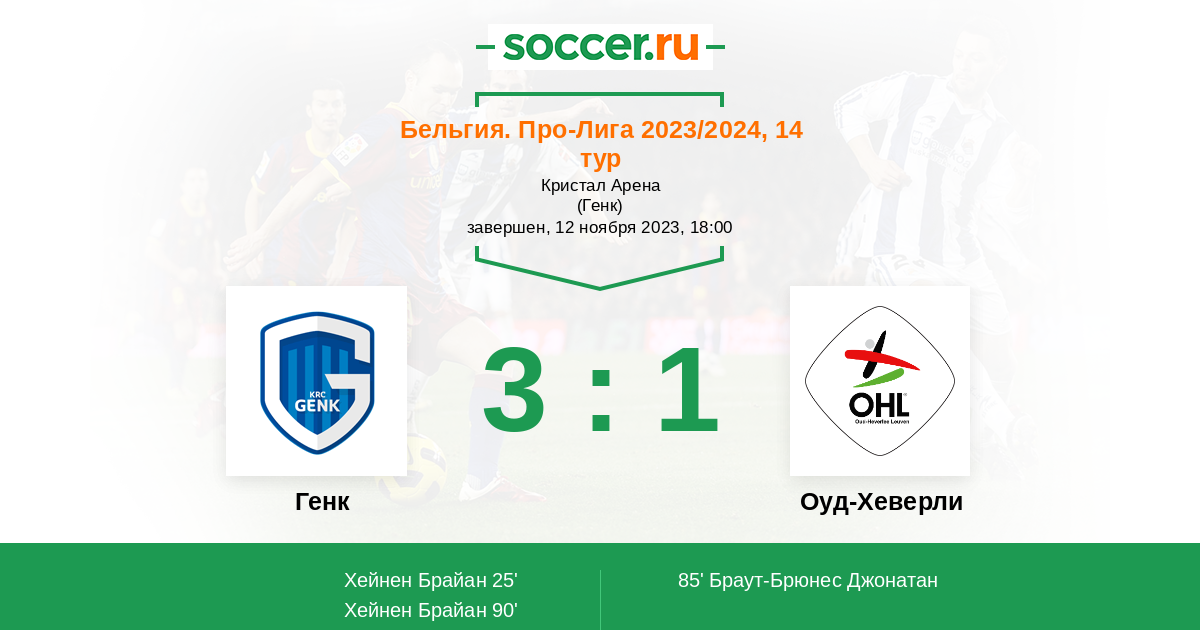 Протокол матча Генк против Оуд-Хеверли
