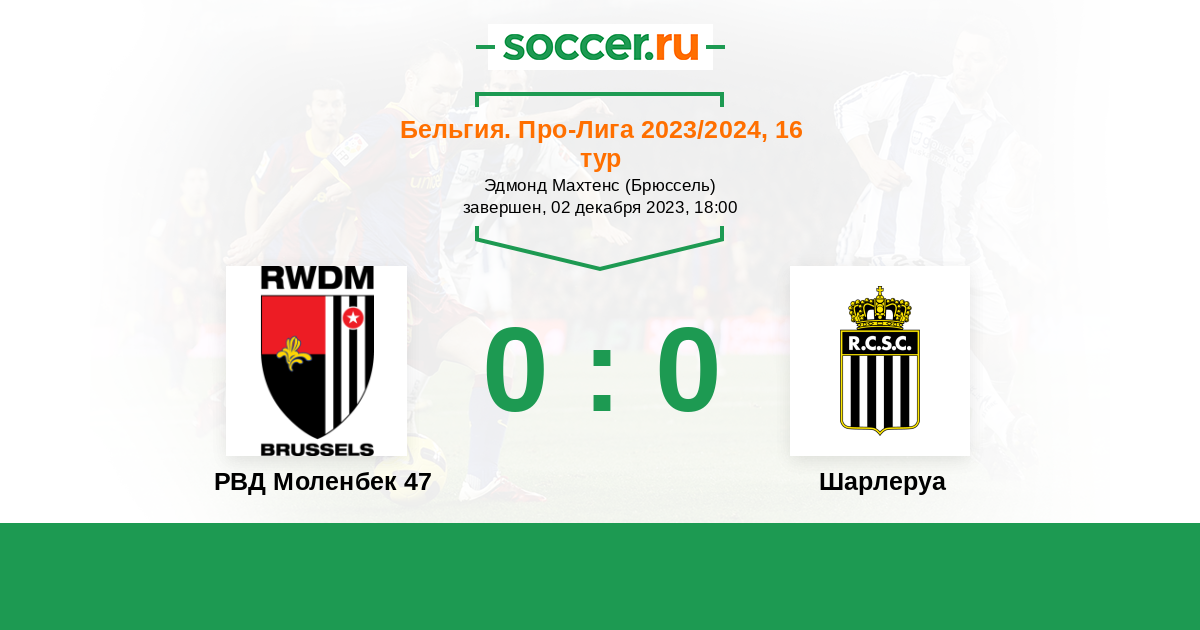 Протокол матча РВД Моленбек 47 против Шарлеруа
