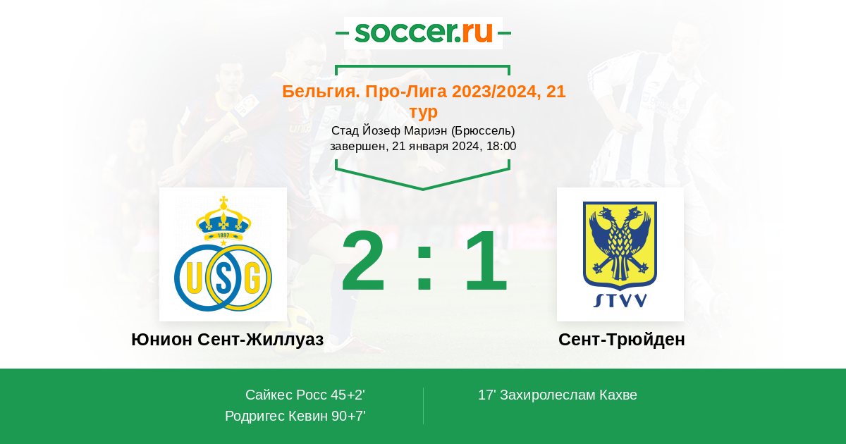 Протокол матча Юнион Сент-Жиллуаз против Сент-Трюйден