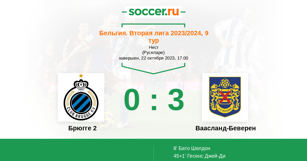 Протокол матча Брюгге 2 против Ваасланд-Беверен