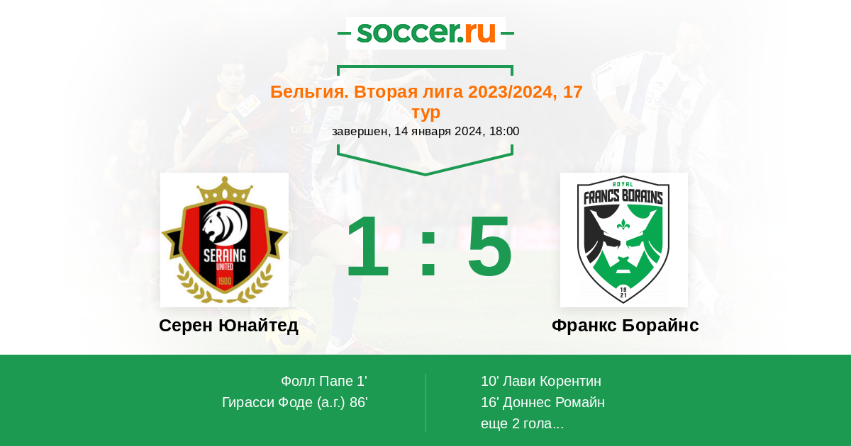 Протокол матча Серен Юнайтед против Франкс Борайнс