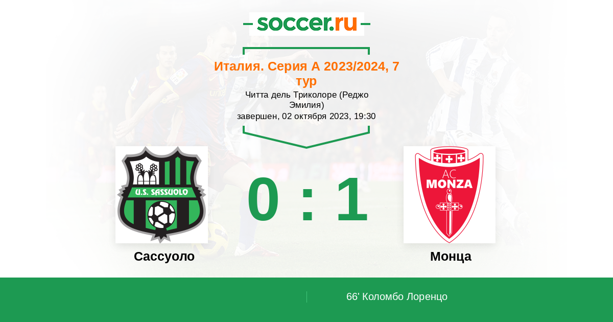 Протокол матча Сассуоло против Монца
