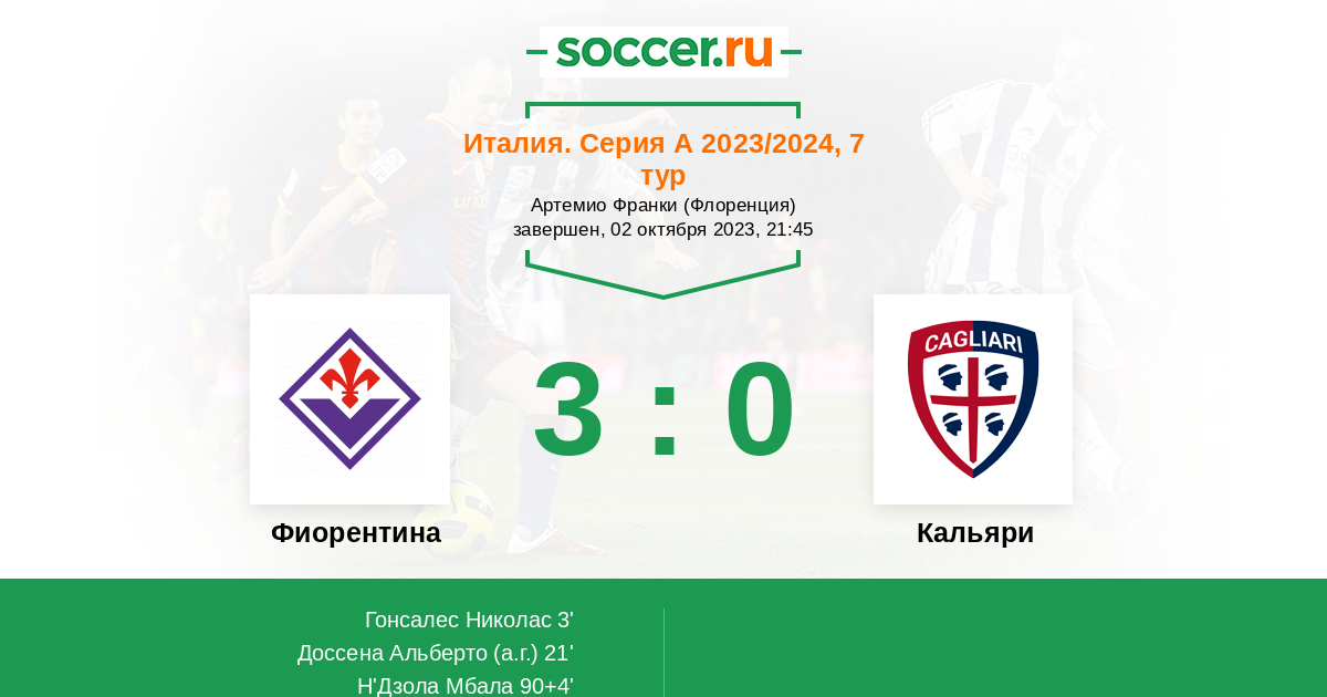 Протокол матча Фиорентина против Кальяри