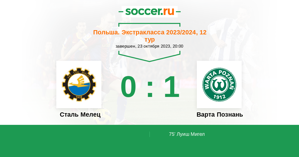 Протокол матча Сталь Мелец против Варта Познань