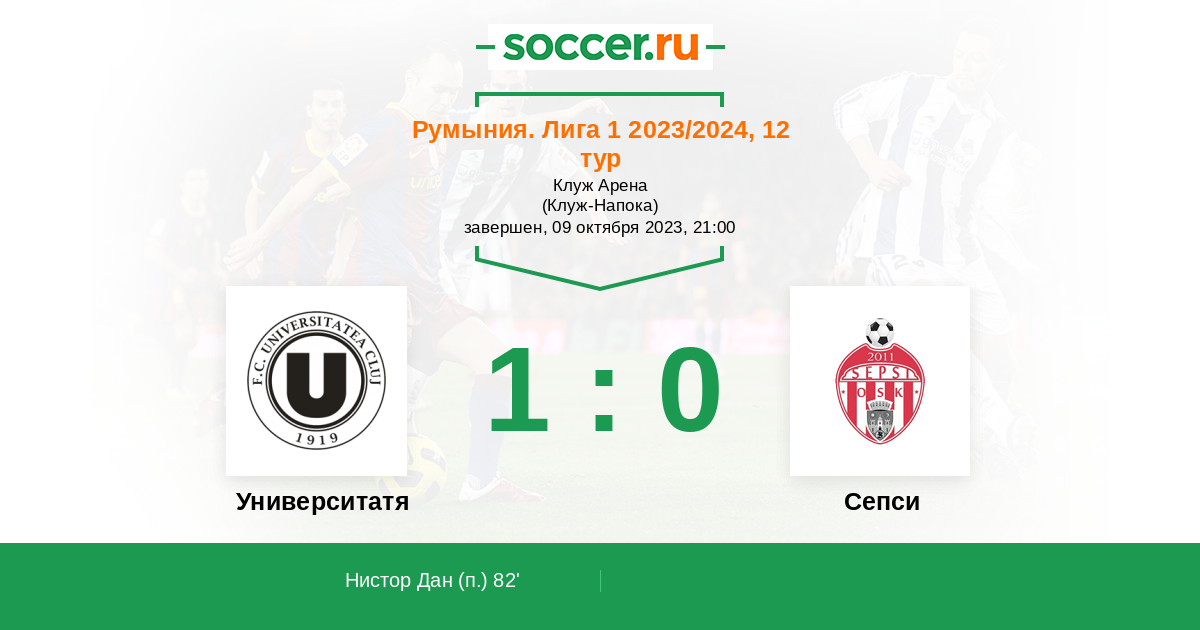Протокол матча Университатя Клуж против Сепси