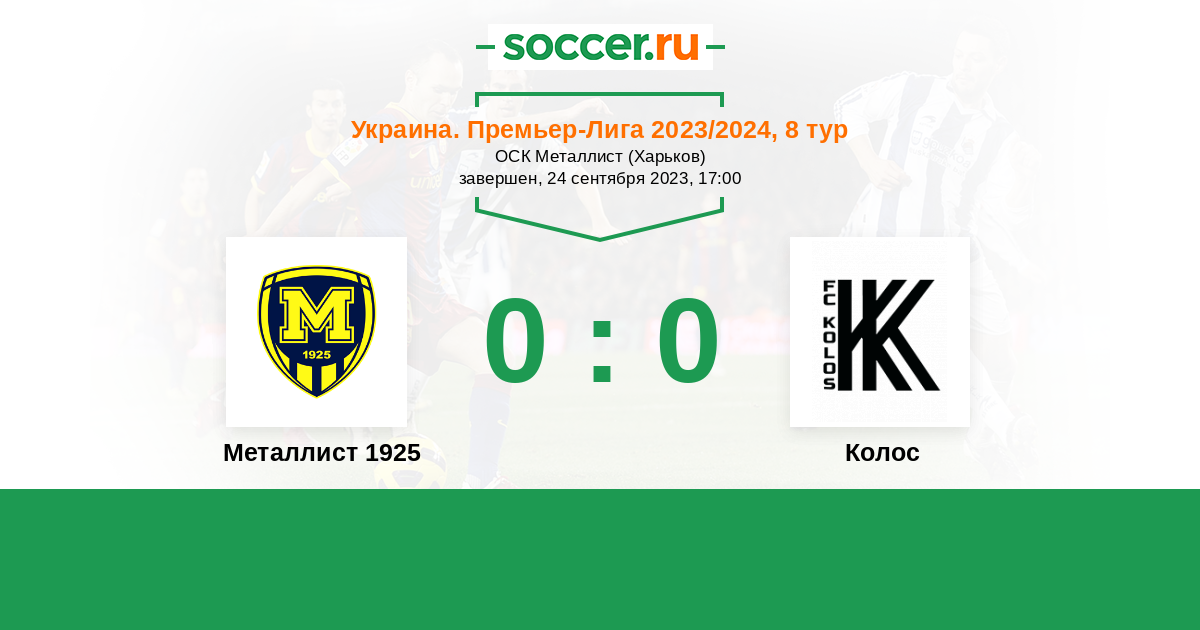 Протокол матча Металлист 1925 против Колос