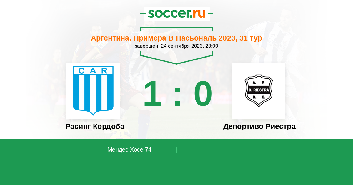 Протокол матча Расинг Кордоба против Депортиво Риестра