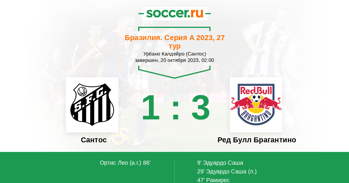 Протокол матча Сантос против Ред Булл Брагантино