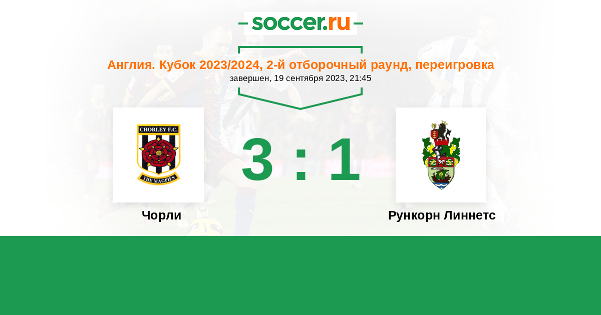В предстоящем матче 2 - го отборочного раунда Кубка Англии 2023/2024 переигровка между командами Чорли и Рункорн Линнетс , фаворитом на победу является команда хозяев Чорли, так как они играют дома.