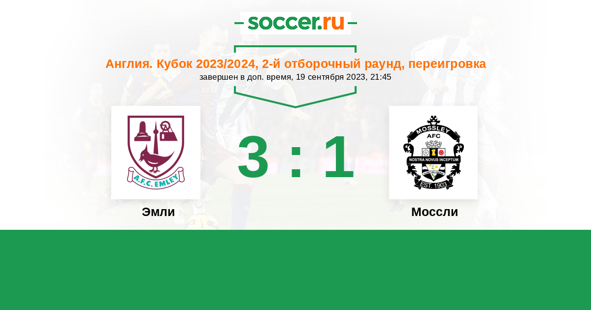 История матча Эмли против Моссли