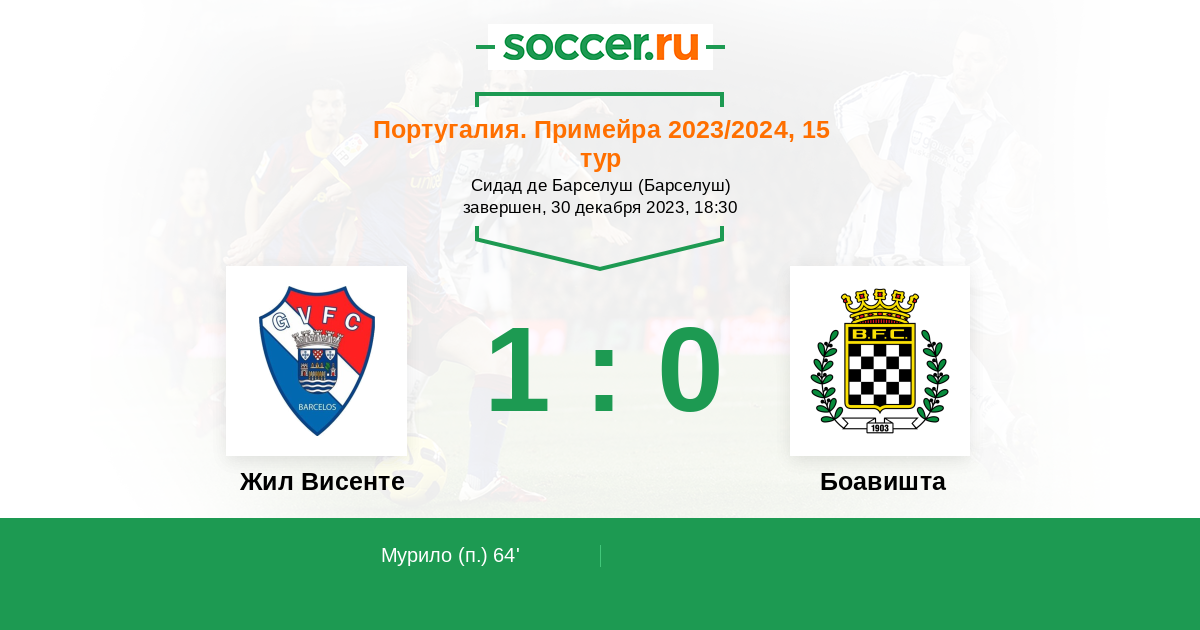 Протокол матча Жил Висенте против Боавишта