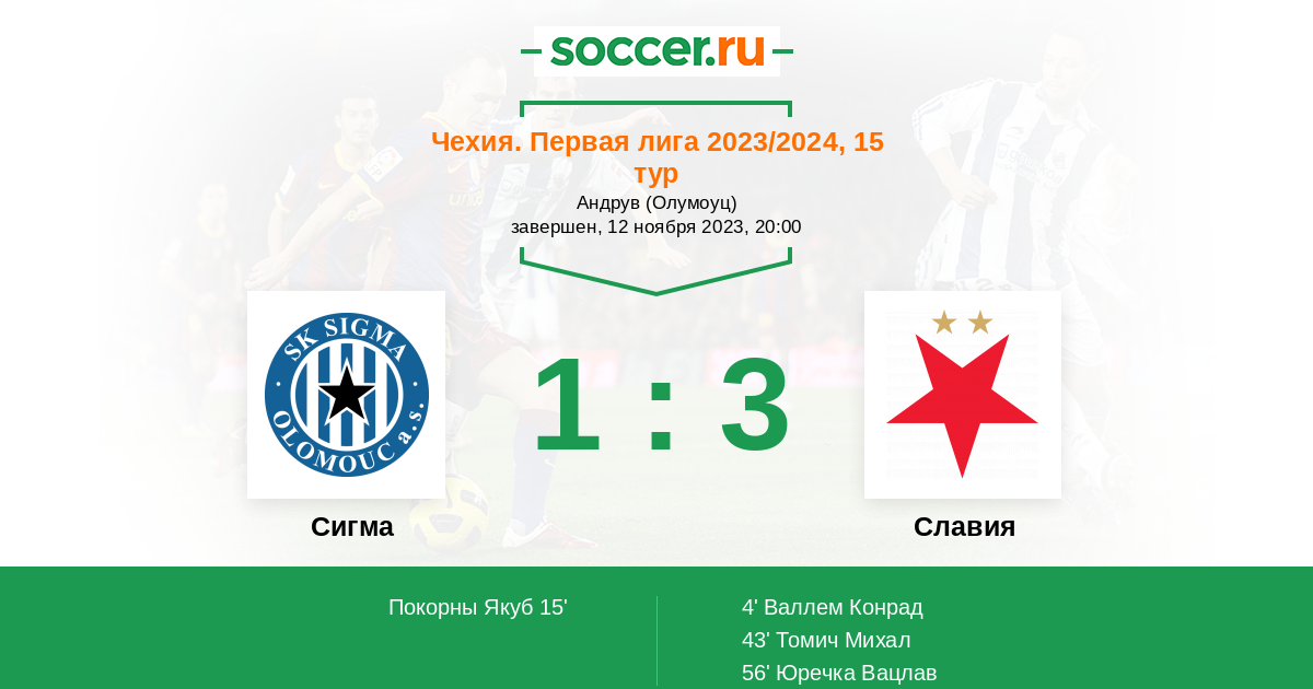 Протокол матча Сигма против Славия