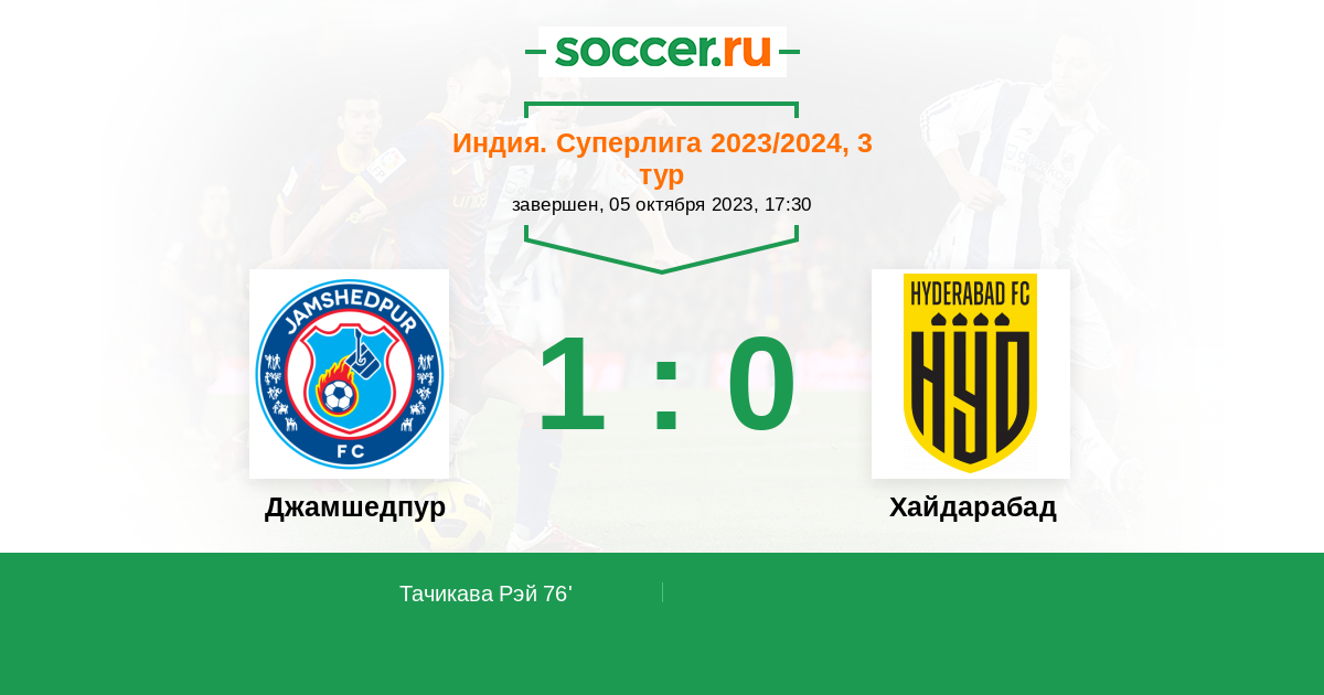 Протокол матча Джамшедпур против Хайдарабад