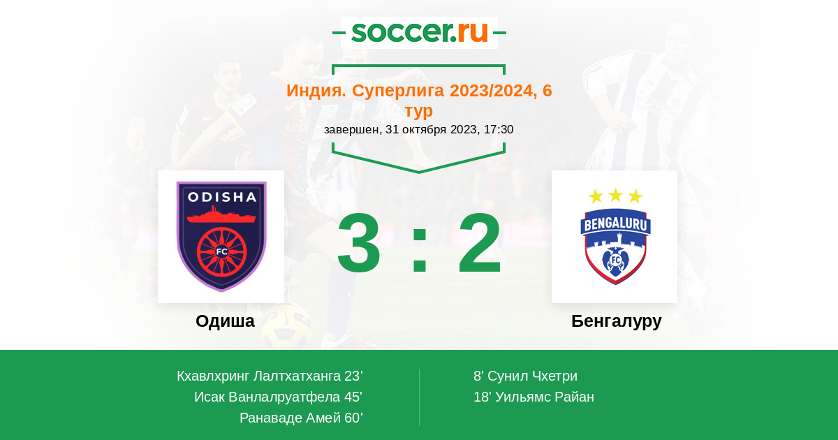 Протокол матча Одиша против Бенгалуру