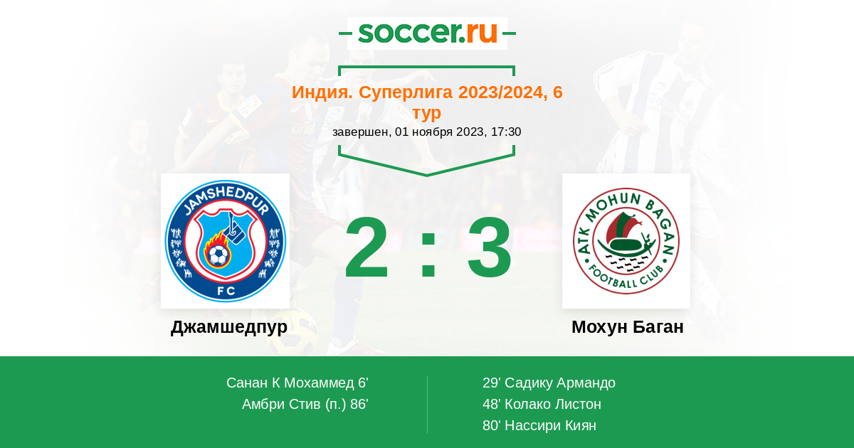 Протокол матча Джамшедпур против Мохун Баган