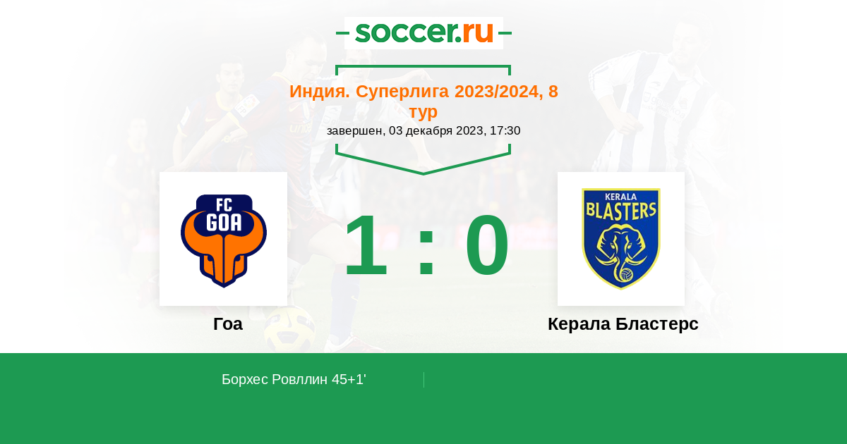 Протокол матча Гоа против Керала Бластерс