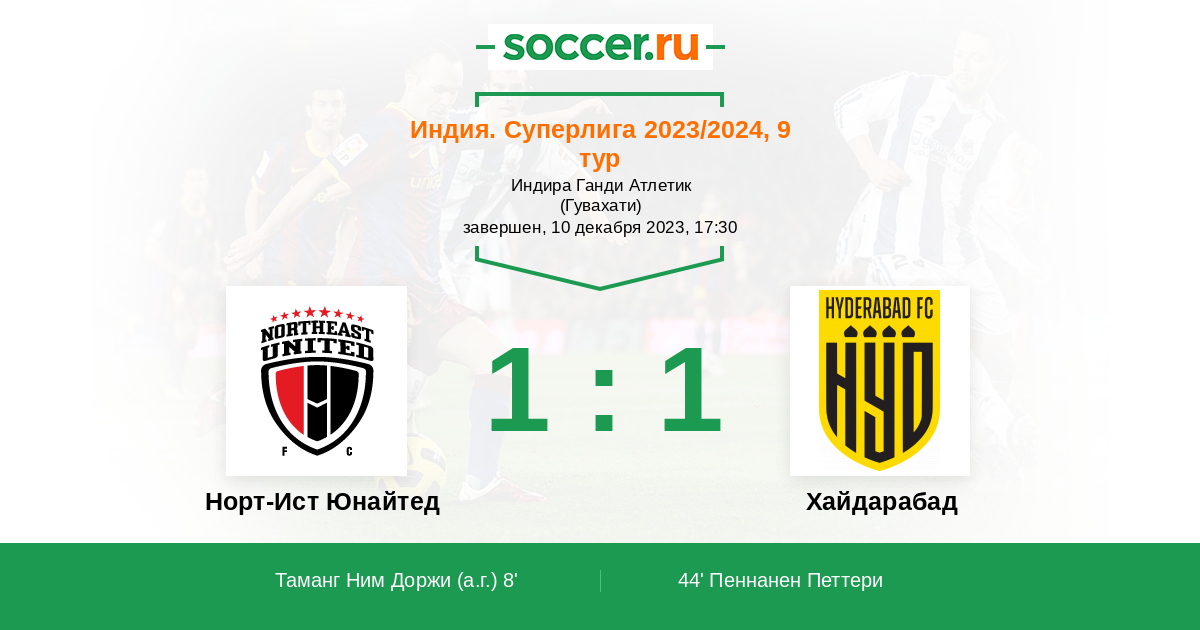 Протокол матча Норт-Ист Юнайтед против Хайдарабад