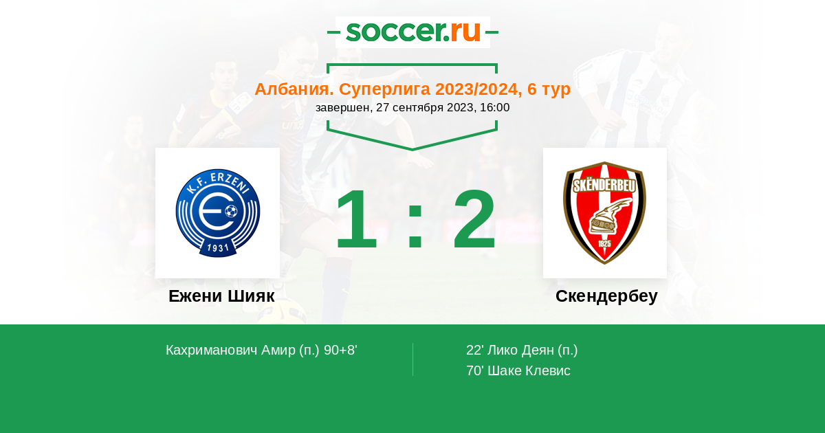 Протокол матча Эрзени Шияк против Скендербеу