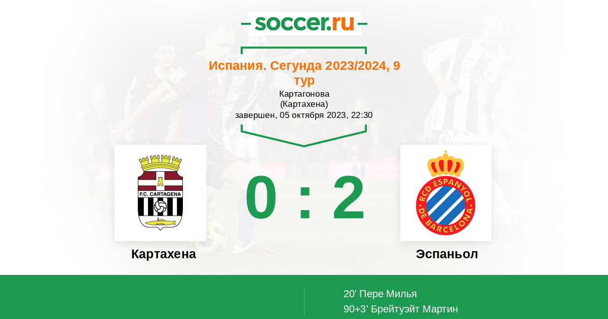20' (0:1) Пере Милья (11) (Хави Пуадо (7))