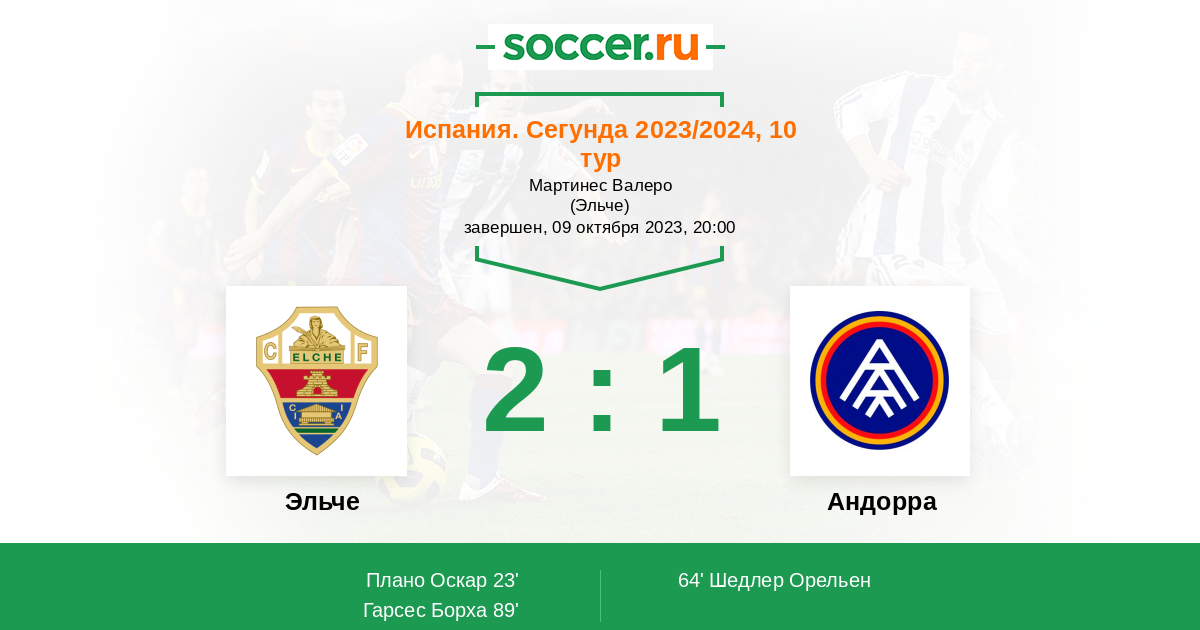 Протокол матча Эльче против Андорра