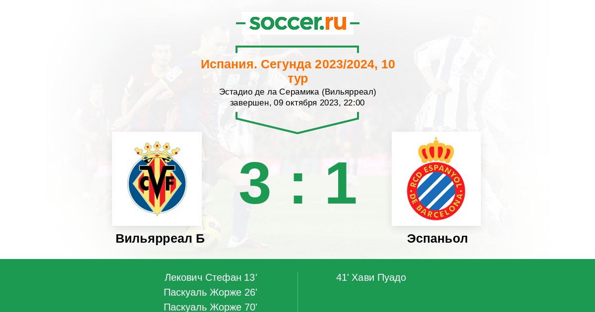 Протокол матча Вильярреал Б против Эспаньол