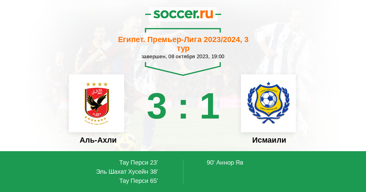 Протокол матча Аль-Ахли против Исмаили