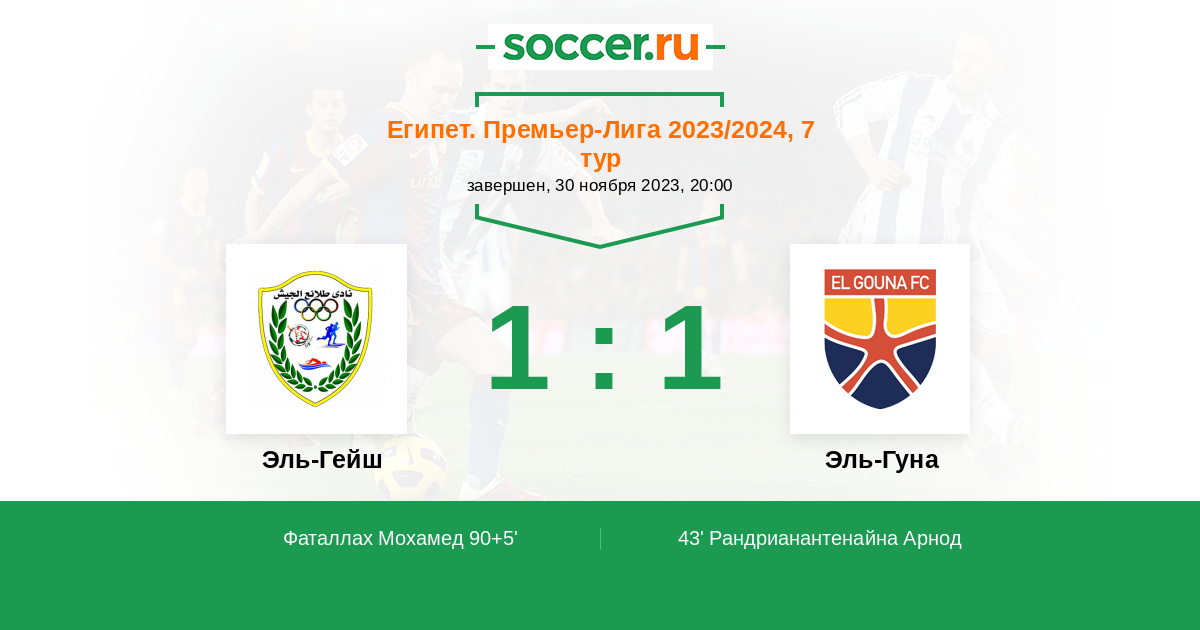 Протокол матча Эль-Гейш против Эль-Гуна