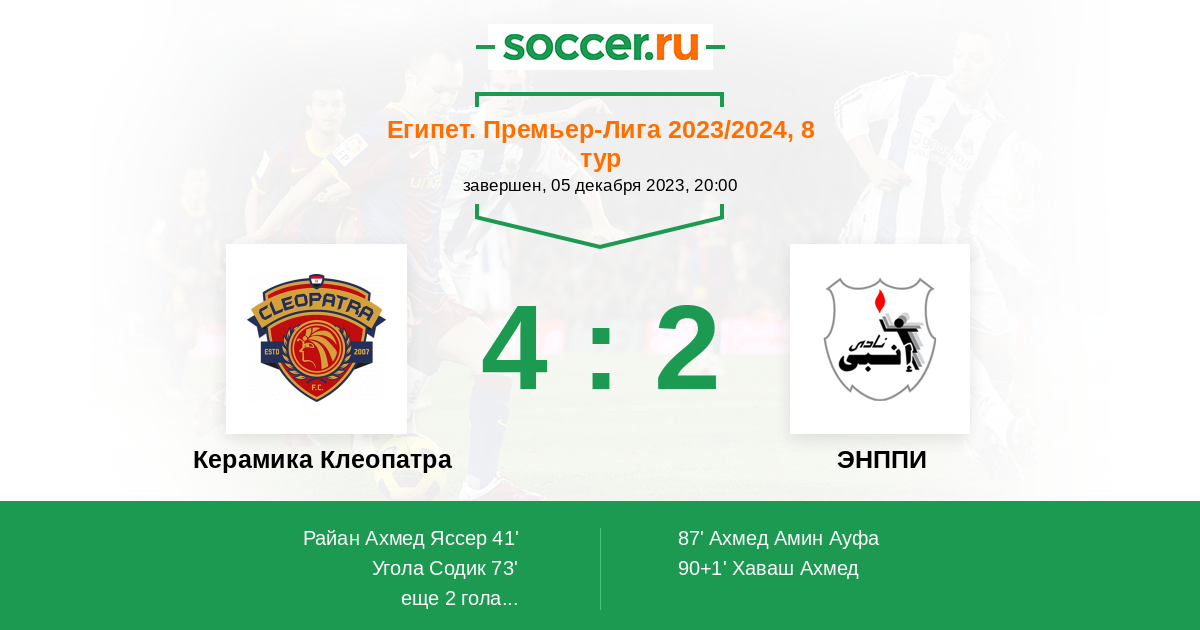 Протокол матча Керамика Клеопатра против ЭНППИ