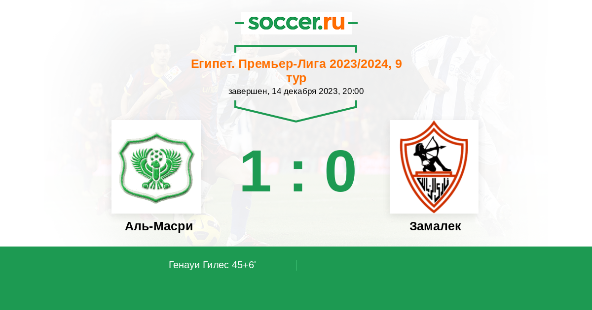 45+6' (1:0) Генауи Гилес (23) (Бен-Юссеф Фахреддин (28))