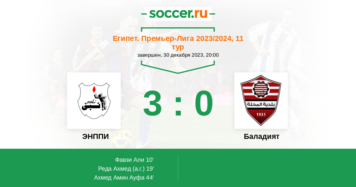 44' (3:0) Ахмед Амин Ауфа (9) (Адель Мостафа (30))