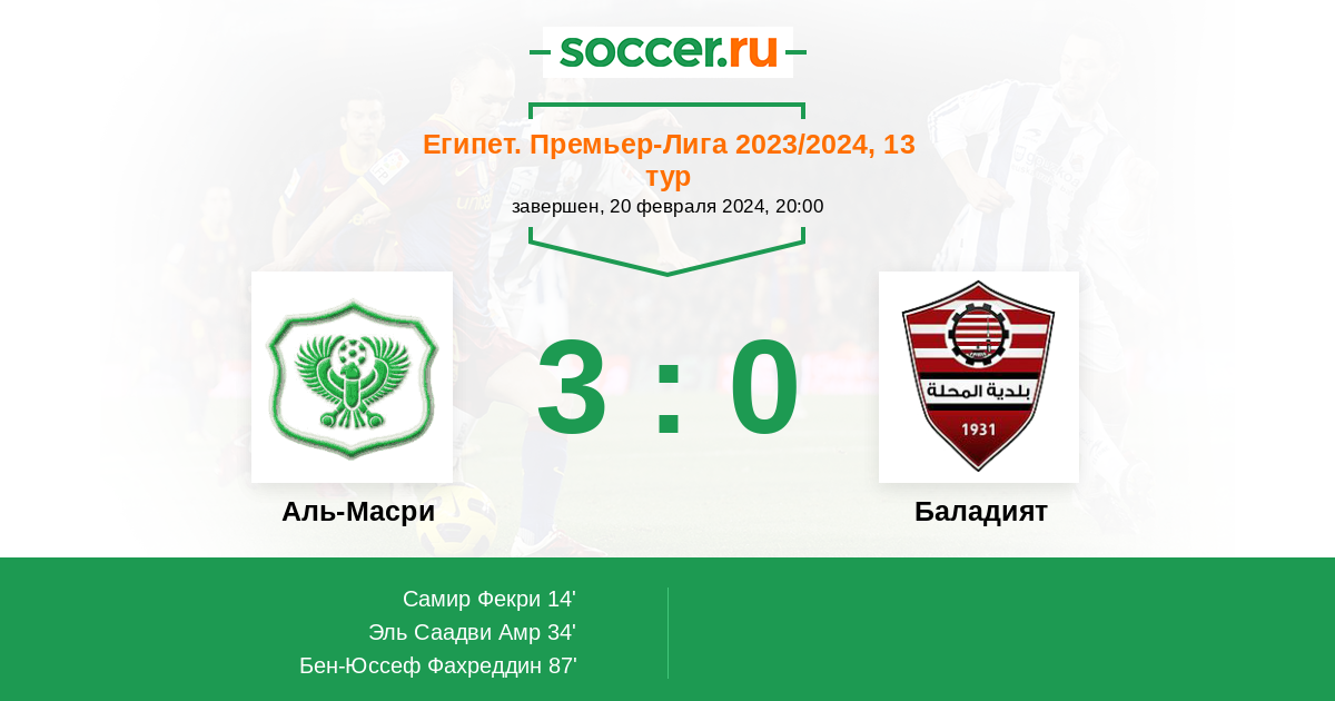 Протокол матча Аль-Масри против Баладият