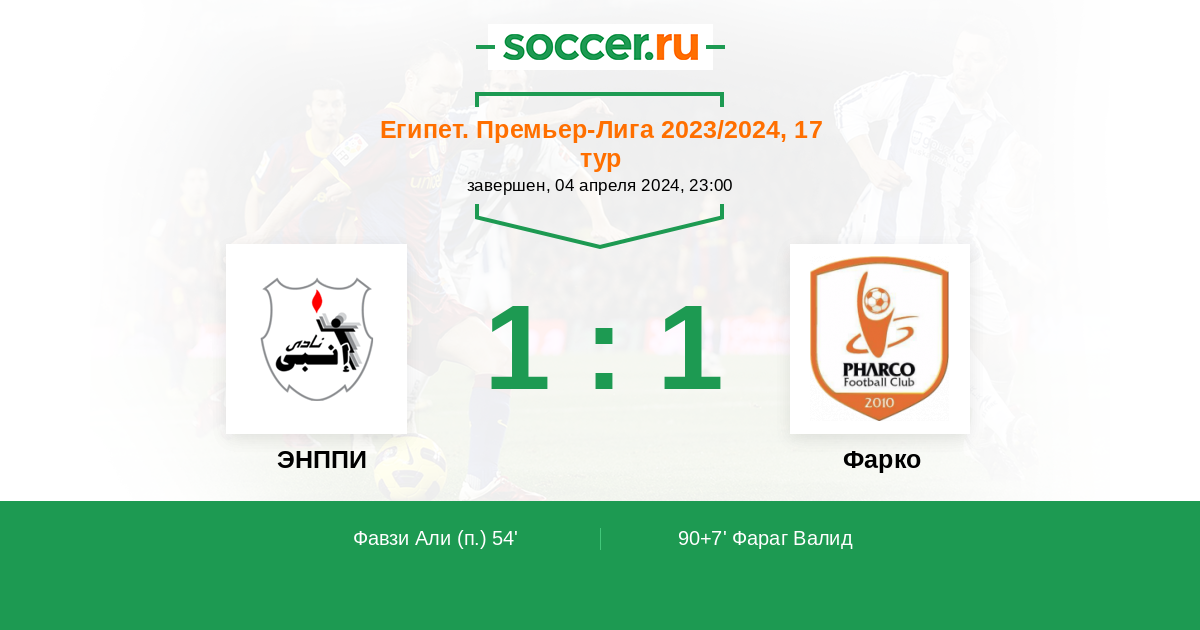 Гол90+7' (1:1) Фараг Валид (18)