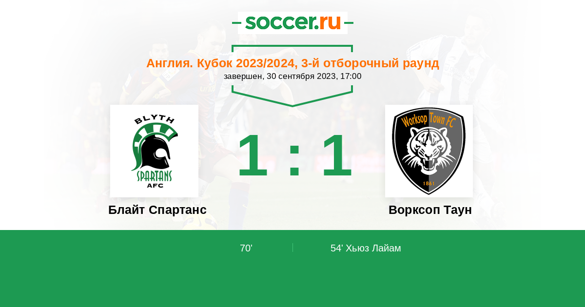 Протокол матча Блайт Спартанс против Ворксоп Таун