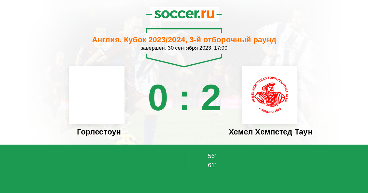 Протокол матча Горлестоун против Хемел Хемпстед Таун