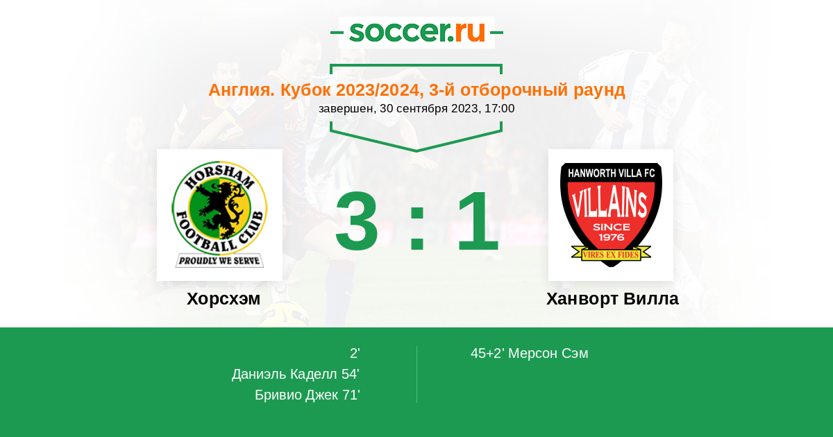 Протокол матча Хорсхэм против Ханворт Вилла