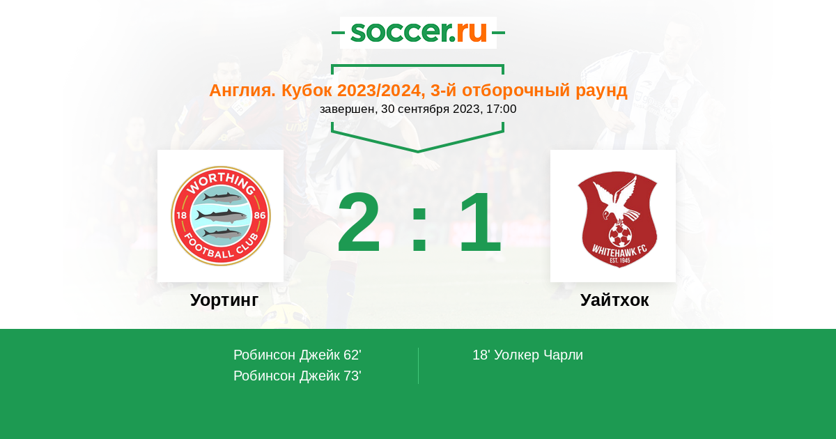 73' (2:1) Робинсон Джейк