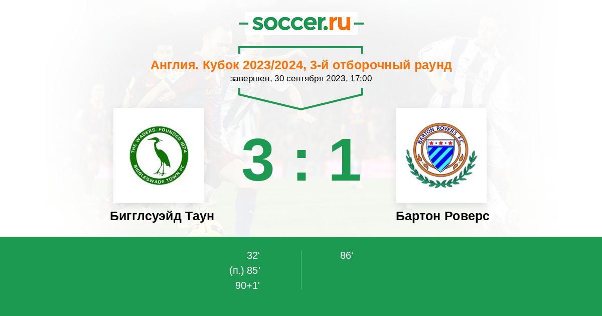 Протокол матча Бигглсуэйд Таун против Бартон Роверс