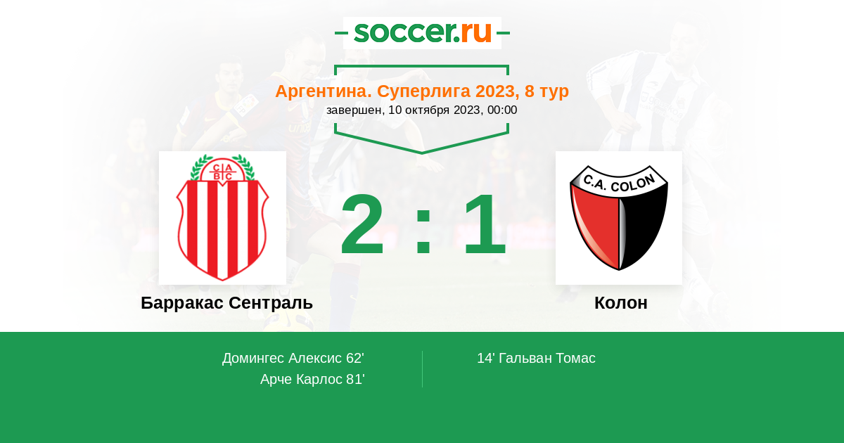 Протокол матча Барракас Сентраль против Колон