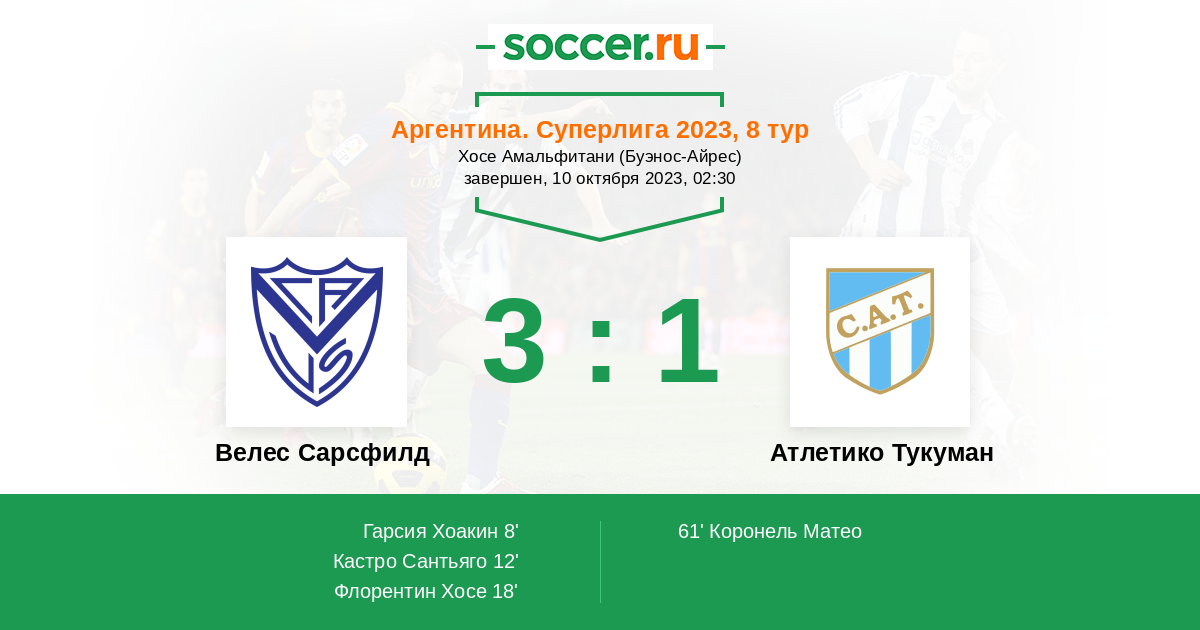 Протокол матча Велес Сарсфилд против Атлетико Тукуман