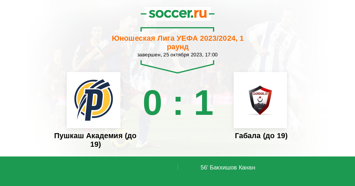 Протокол матча Пушкаш Академия (до 19) против Габала (до 19)