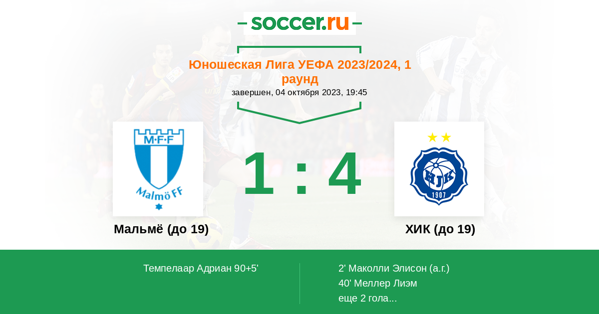Протокол матча Мальмё (до 19) против ХИК (до 19)