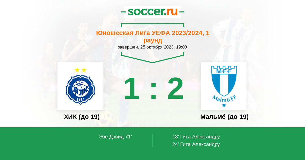 Протокол матча ХИК (до 19) против Мальмё (до 19)
