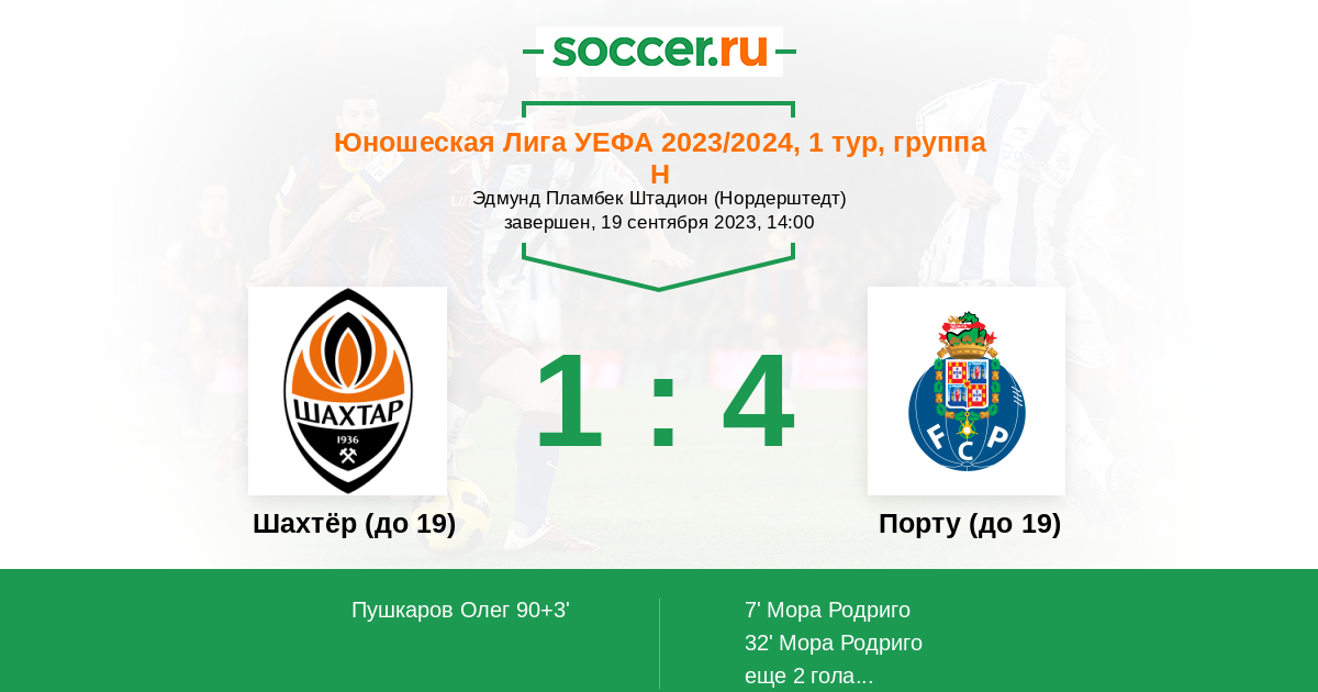 Протокол матча Шахтёр (до 19) против Порту (до 19)