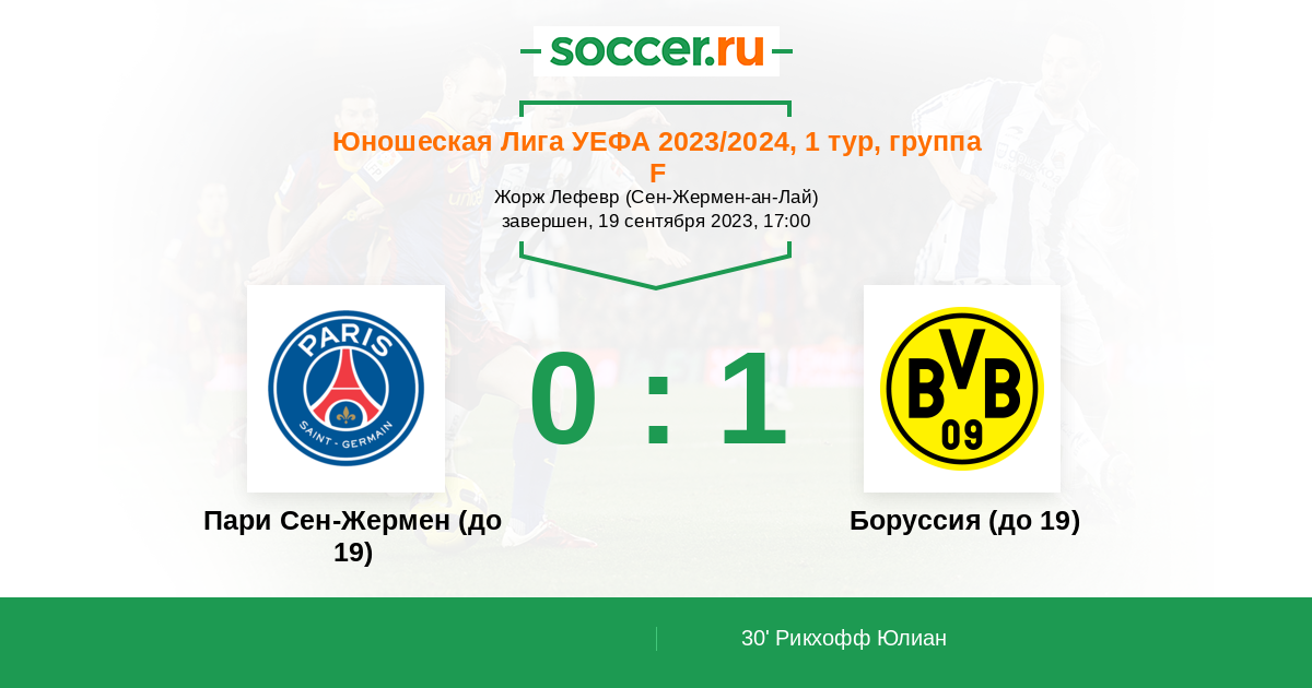 Протокол матча Пари Сен-Жермен (до 19) против Боруссия (до 19)