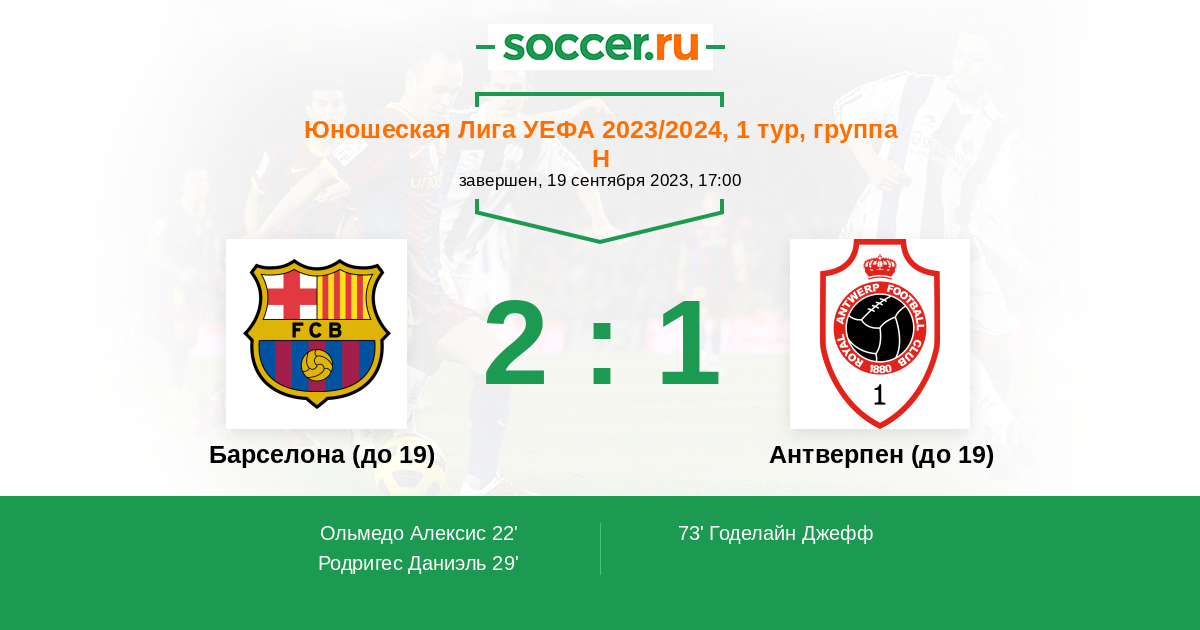 Протокол матча Барселона (до 19) против Антверпен (до 19)