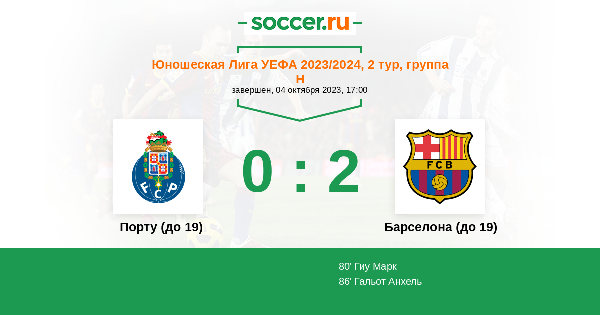 Протокол матча Порту (до 19) против Барселона (до 19)